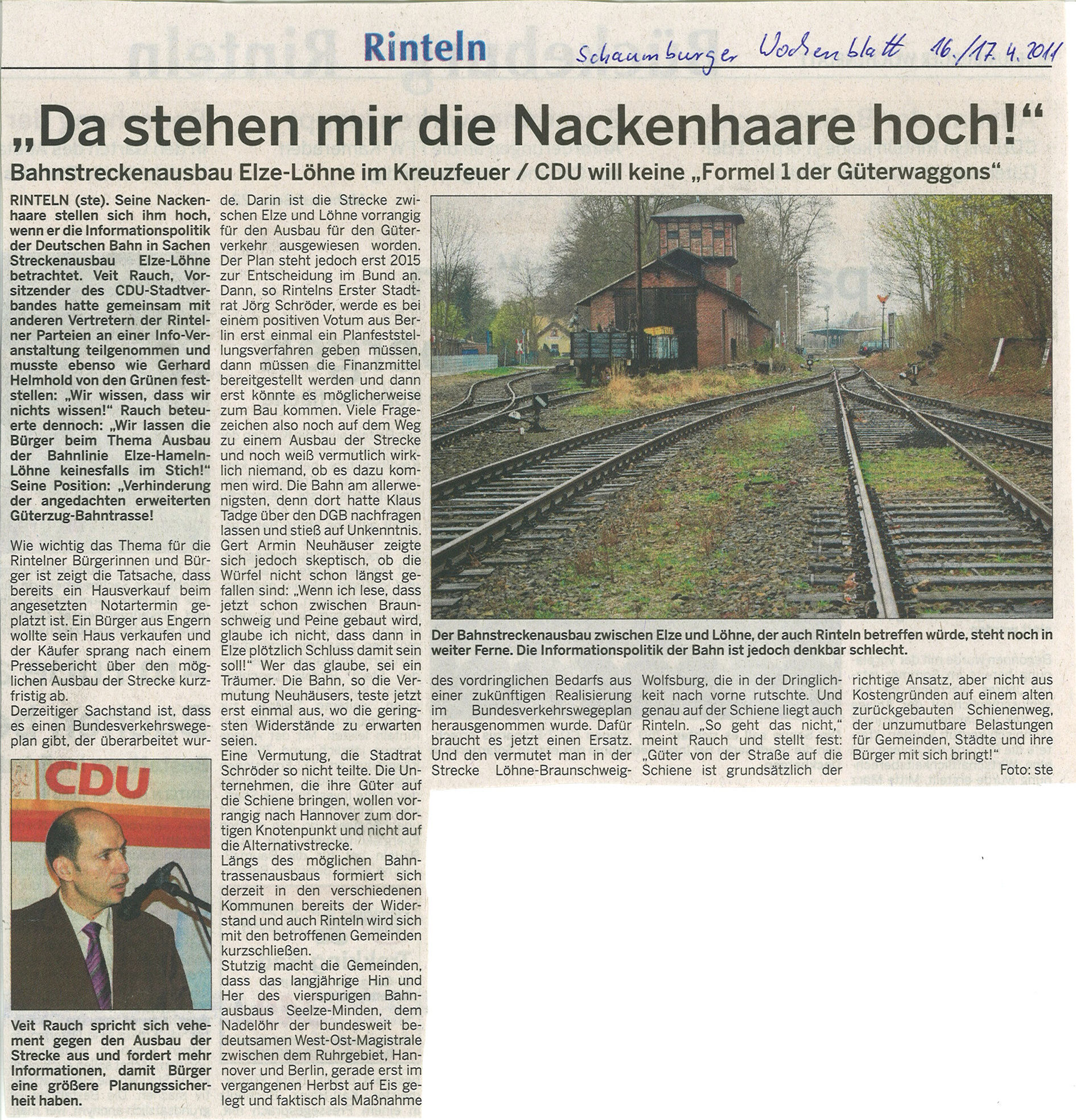 | 20.05.2011 | Deister- und Weserzeitung | Schienenausbau -- CDU warnt vor Panikmache |