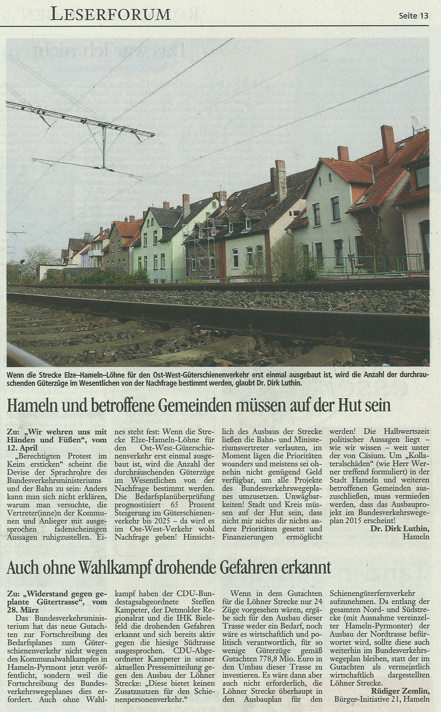 | 12.04.2011 | Deister- und Weserzeitung | Kommentar "Güterverkehr, wohin?" |