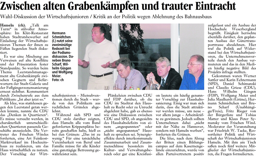 | 26.08.2011 | Deister- und Weserzeitung | Zwischen alten Grabenkaempfen und trauter Eintracht |