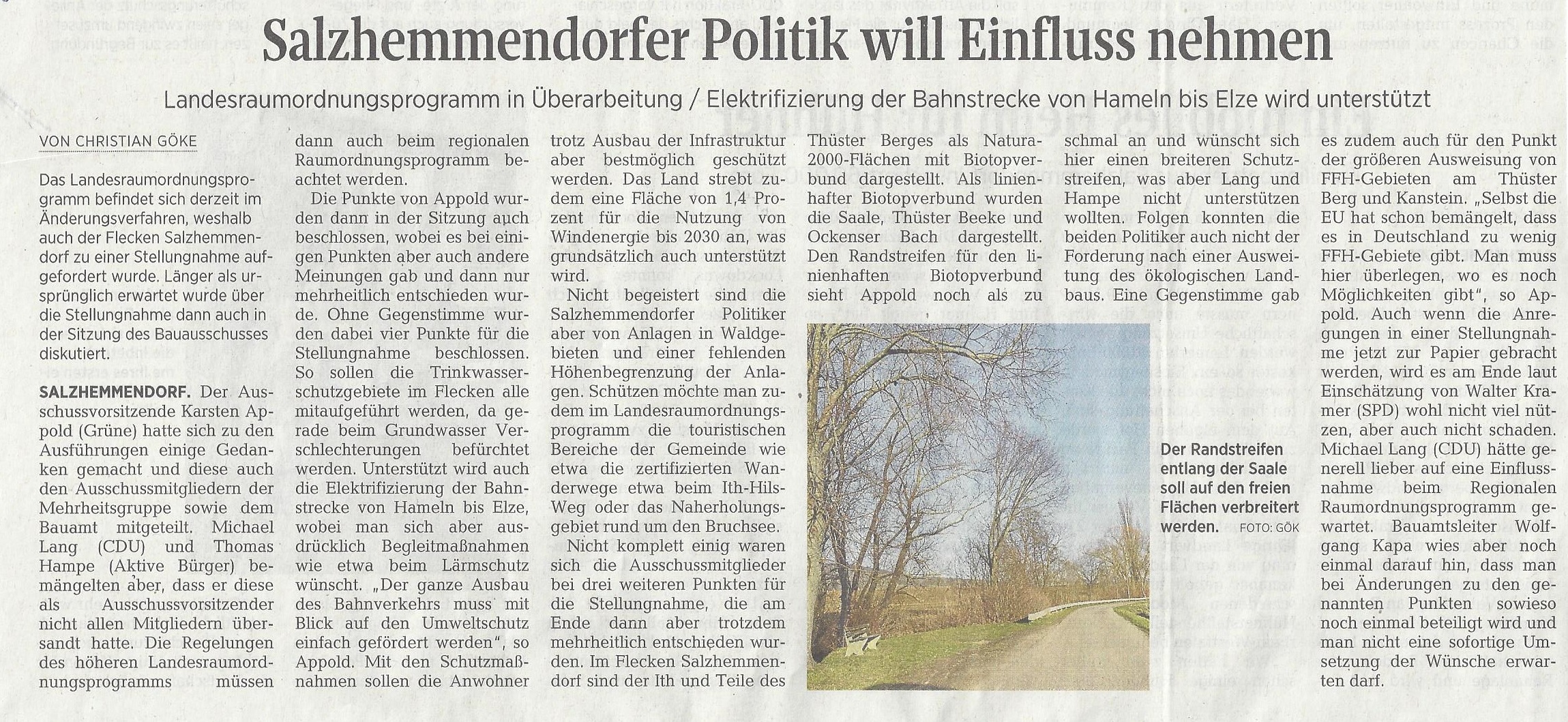 Salzhemmendorfer Politik will Einfluss nehmen |